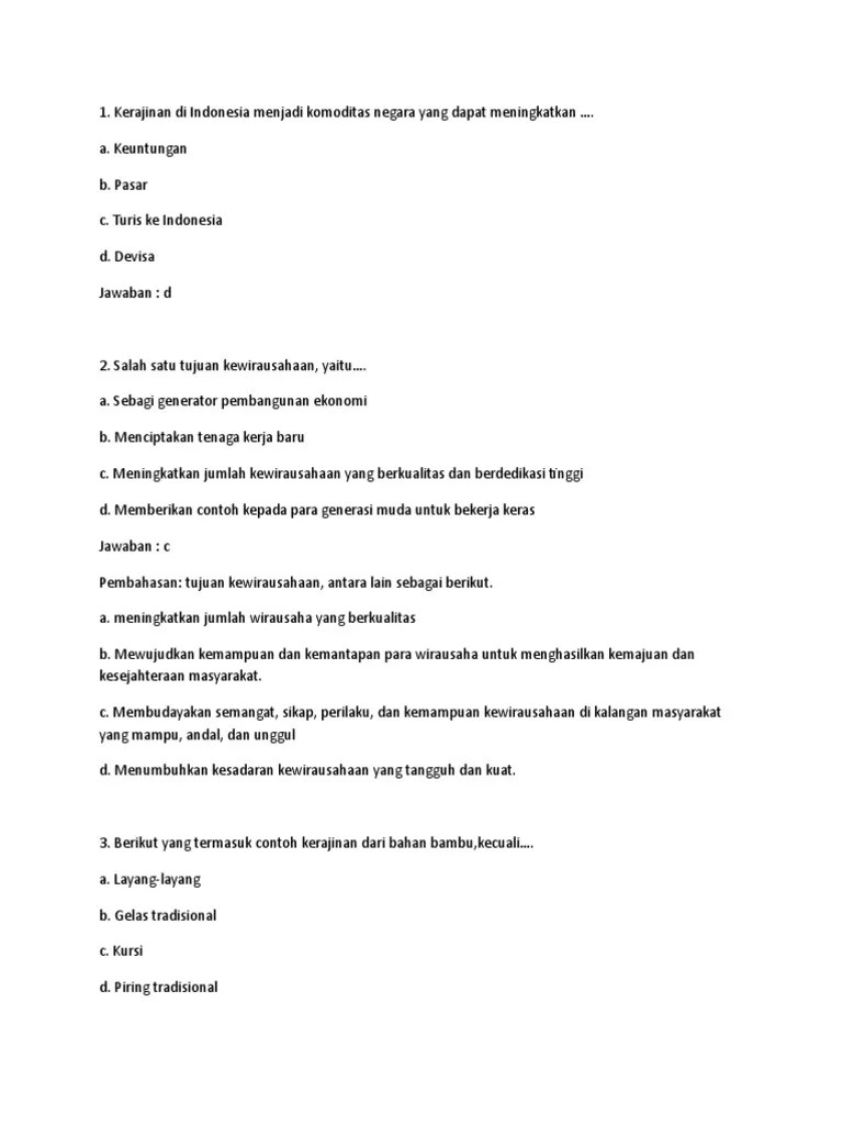 Seringkali mereka ialah orang yang sangat . Kejujuran merupakan hal utama jika ingin menjadi pengusaha yang sukses. Lalu taukah kamu pengertian wirausaha . Berikut jawaban yang paling benar dari pertanyaan: A.membudayakan dan menumbuhkan semangat,sikap,perilaku,dan kemampuan . Daya saing versi wef adalah daya saing suatu negara/ekonomi, bukan daya saing suatu. Berikut yang bukan merupakan tujuan dari kewirausahaan adalah. Kegiatan wirausaha juga merupakan upaya untuk mensukseskan bisnis yang sedang dijalankan. Berikut adalah penjelasan lengkap mengenai pengertian wirausaha, tujuan wirausaha, dan sebagainya.,wirausaha,inspirasi wirausaha,jatim,ragam . Berikut ini adalah beberapa tujuan wirausaha. Berikut yang bukan tujuan dari wirausaha adalah …… a. Sementara orang kaya justru merupakan pegawai, pejabat, dan pns. Tingkatkan jumlah wirausahawan berkualitas b.