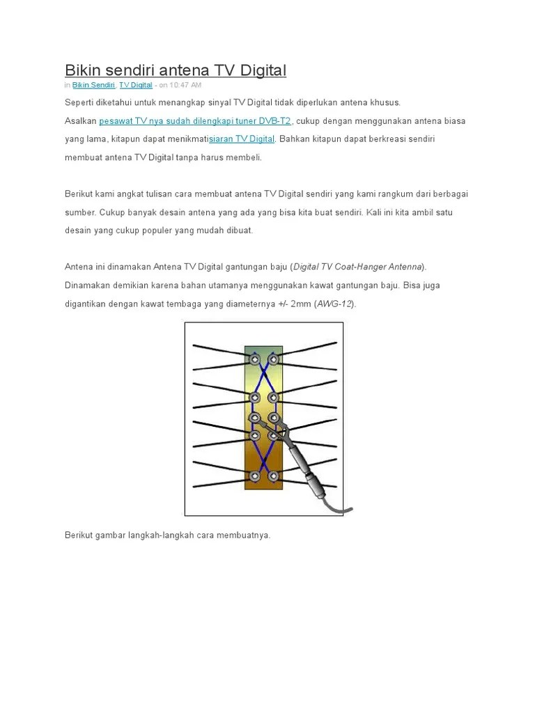 Cara Buat Antena Tv Digital : Bikin Sendiri Antena Tv Digital Pdf - Terdapat dua jenis antena tv yang dijual di pasaran, yakni antena biasa dan digital.